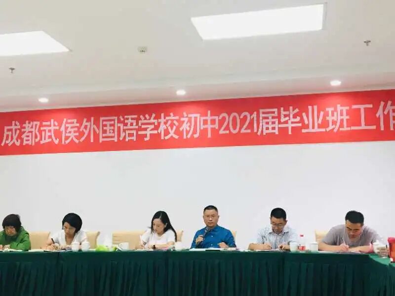 9月12日,初2021届毕业班工作会在秋雨濛濛的花水湾拉开帷幕。参加此次会议的人员有成都武侯外国语学校校长樊彬、副校长刘攀、中学德育处周萸主任、中学教务处梁翠芬主任、行政办沈小琦副主任、中学学监刘振坤老师、初2021届年级组长罗琴老师和全体科任教师,大会由年级组长罗琴老师主持。