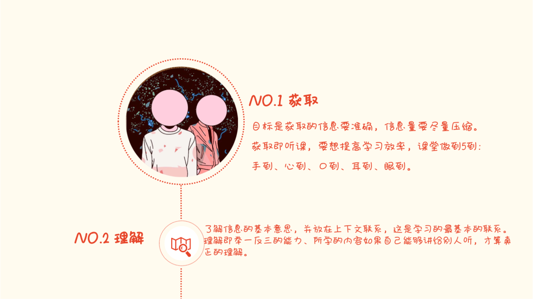 获取是所有学习的地基。获取,顾名思义,获取知识,获取方法,获取重点。而获取的不二法门便是课堂。所谓课堂,便是需要倾心聆听的地方。所以要想获取,最关键的就是课堂。课堂上要做到5到。手到、眼到、心到、耳到、嘴到。