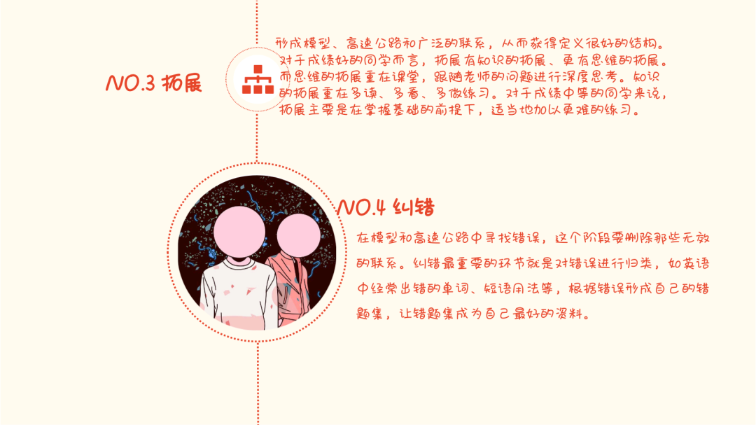 纠错听起来并不难,便是把做的错题改过来。但纠错并不是练习本上的红笔印,而是你心中的已到标记。错了,便是你的知识盲点,是你经过前三步后还没有掌握的,可见它的重要性,你做错的,一定是你没有掌握的。所以需要不断的反复看,一次不行就多看一下,多想一下。